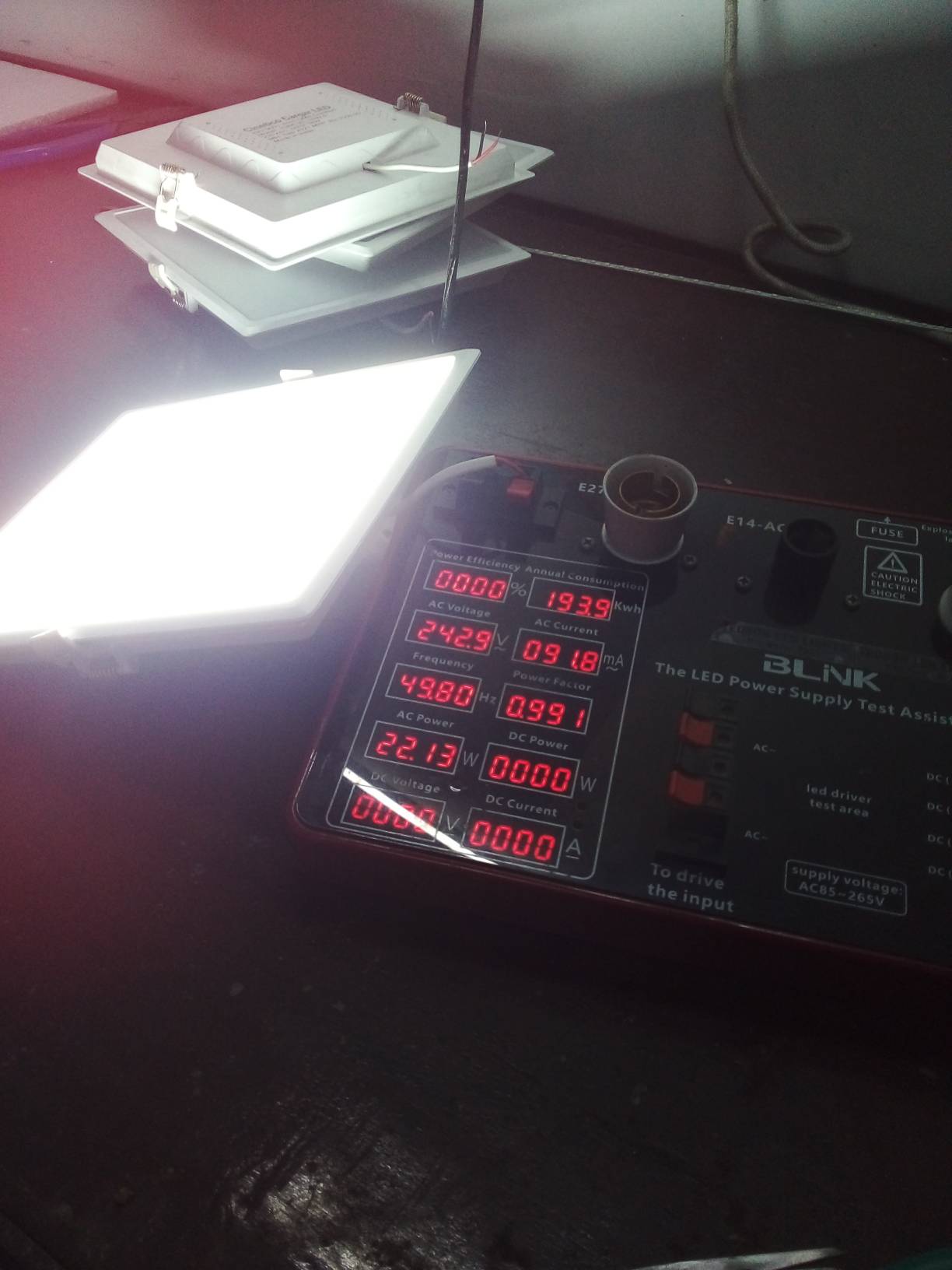 Test result for 18 W LED 1x1 recessed panel downlighter dispatched to Military Engineering College, Pune, Maharashtra.